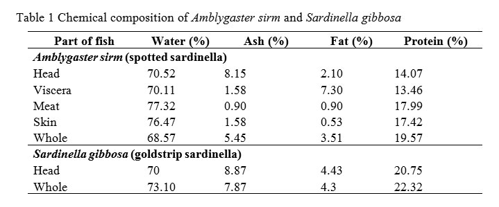 Table 1 Chemical composition of Amblygaster sirm and Sardinella gibbosa Table1: Chemical composition of Amblygaster sirm and Sardinella gibbosa