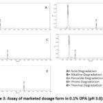 A base degradation study was carried out using an identical environmental chamber at 60°C and 75% of relative humidity. In a 10 ml volumetric flask, the 0.3 ml of the standard solution and 0.3 ml of 1 M sodium hydroxide were mixed and left for 16 hours. The solution was treated with 1 M HCl after the appropriate stress period, and the mobile phase was used to adjust the volume.