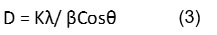 Table 2: Crystalline size calculation using Debye Scherrer expression