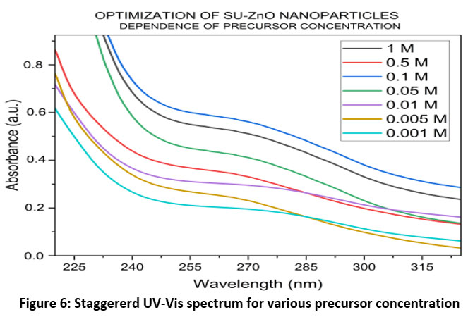 Figure 6: Staggererd UV-Vis spectrum for various precursor concentration. |