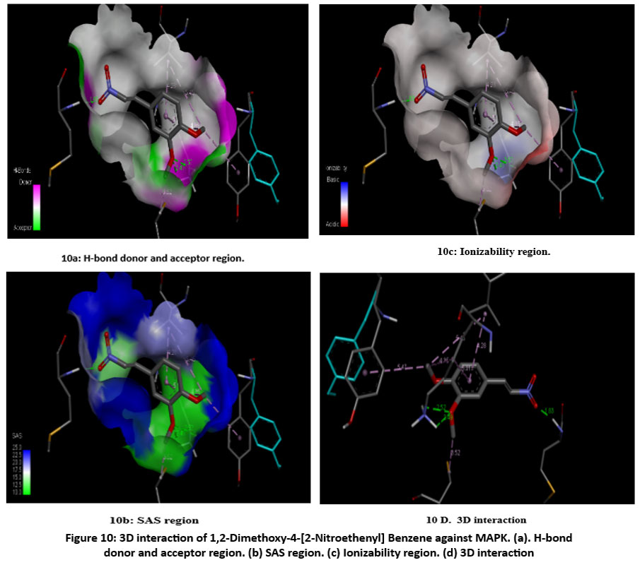Figure 10: 3D interaction of 1,2-Dimethoxy-4-[2-Nitroethenyl] Benzene against MAPK. Click here to View Figure