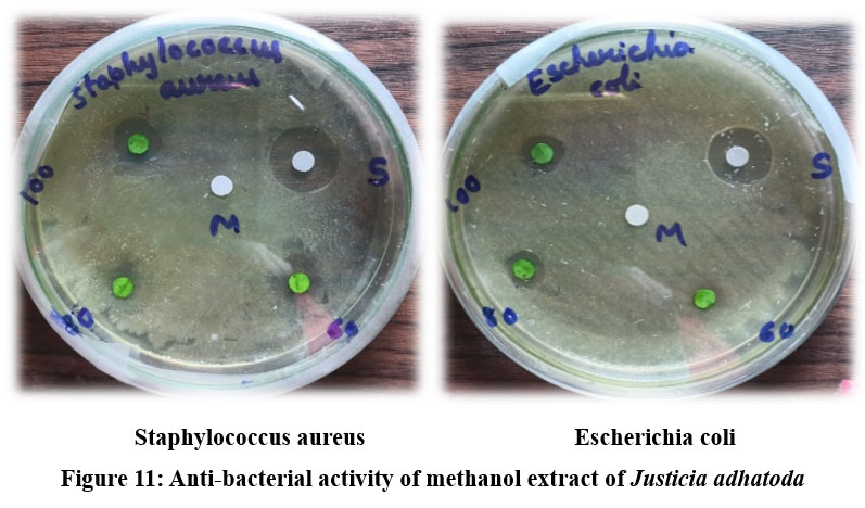 Figure 12: Anti-bacterial activity of methanol extract of Justicia adhatoda.Click here to View Figure
