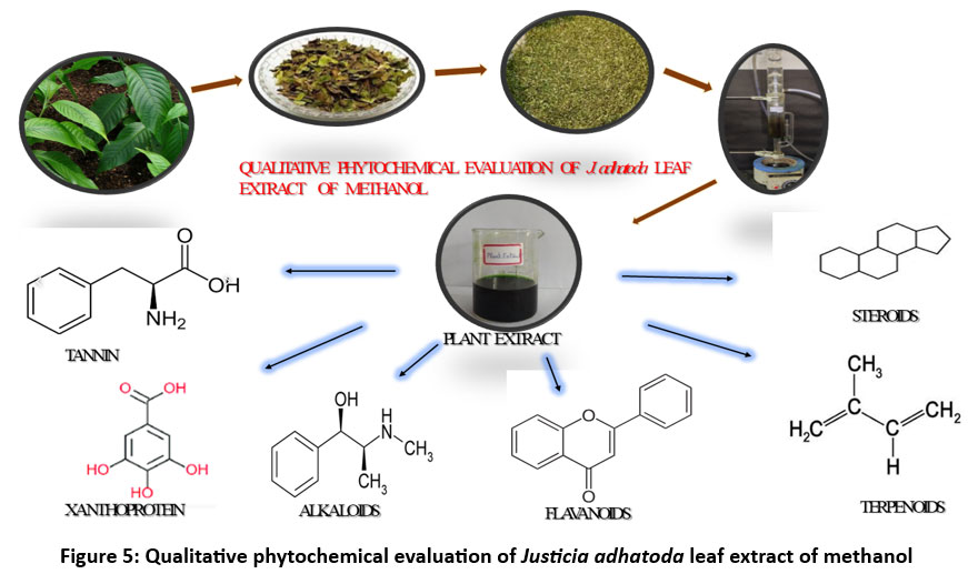 Figure 5: Qualitative phytochemical evaluation of Justicia adhatoda leaf extract of methanolClick here to View Figure