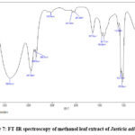 Figure 7: FT-IR spectroscopy of methanol leaf extract of Justicia adhatoda.Click here to View Figure
