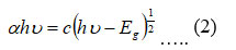 The absorptivity coefficient is influenced by the energy of the incident photons in the following manner when a direct band gap is present [13, 14, and 15].