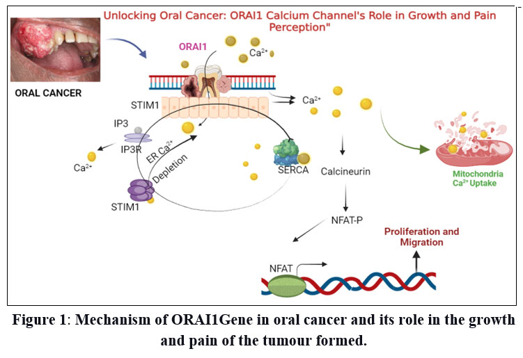 Figure 1: Mechanism of ORAI1Gene in oral cancer and its role in the growth and pain of the tumour formed. |