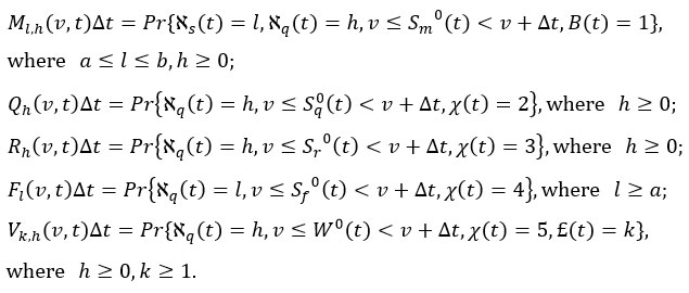 Cox29 established the supplementary variable approach. Using the supplementary variable approach, we establish the steady state difference-differential equations for the suggested model at different time epochs in the way described below: