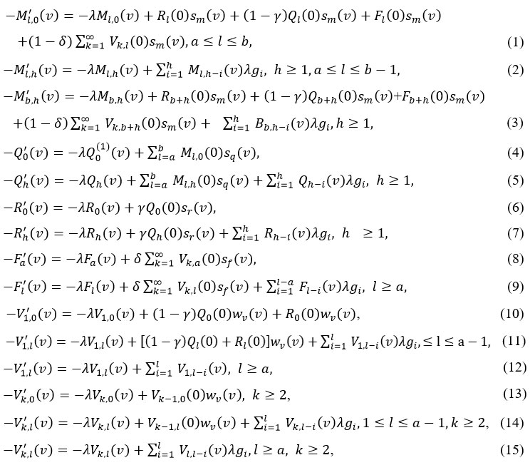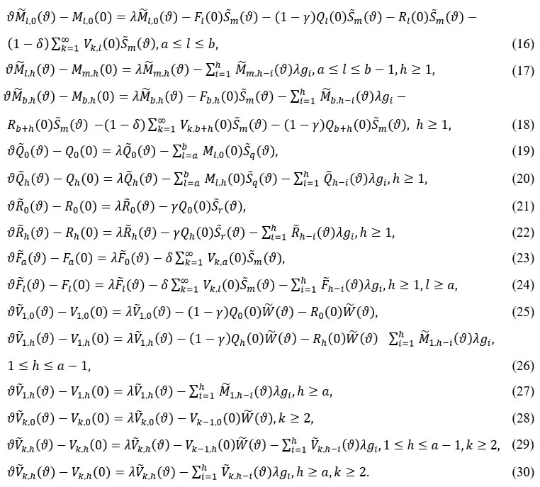 Similarly, the LST F, Q, R and V are defined using the same manner. Using the LST on both sides of equations (1) – (15), we obtain