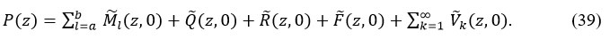 By multiplying equations (16) to (30) with suitable powers of zh and summing over h, then by using (31) and after some mathematical manipulations, we get