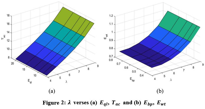 Table 2: The impact of arrival rate (λ) on Eql, Ewt, Ebp, Eip and Tac.