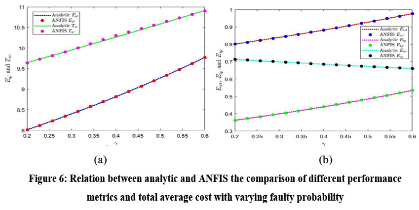 Figure 6: Relation between analytic and ANFIS the comparison of different performance metrics and total average cost with varying faulty probability