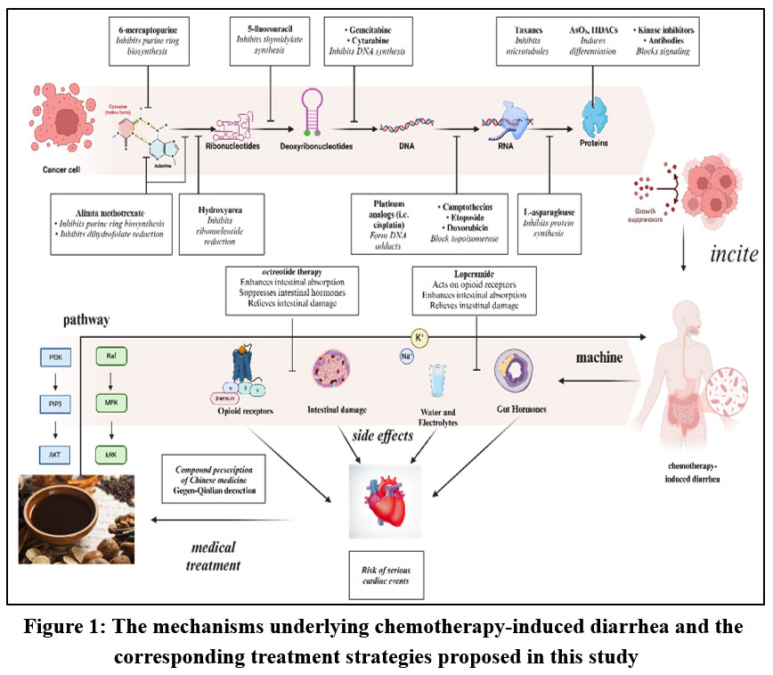 Figure 1: The mechanisms underlying chemotherapy-induced diarrhea and the corresponding treatment strategies proposed in this study |