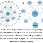 The overlapping targets between core drug targets and disease-related targets were uploaded to the STRING36 database (https://cn.stringdb.org/) to generate a PPI network. The species was specified as “Homo sapiens,” and the minimum required interaction score was set to ≥0.4. The obtained PPI network was subsequently imported into Cytoscape 3.10.0 for in-depth analysis. Key targets were identified by evaluating three topological metrics: DC, CC, and BC, which reflect the significance and connectivity of each node within the network. Furthermore, the MCODE plugin in Cytoscape 3.10.0 was applied to cluster and simplify the PPI network, using the following parameters: minimum MCODE score > 2, Node Score Cutoff = 0.2, k-core = 2, and maximum depth = 100.