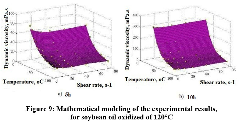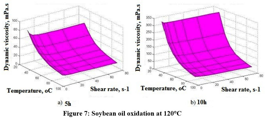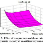 The rheometer apparatus was used to study how the viscosity of soybean oil changes with temperature and shear rate. The experiment durations of 5 and 10 hours. Measurements of dynamic viscosity were then taken across.. In all cases of oxidation or test temperature the dynamic viscosity of soybean oil decreased as the shear rate increased.