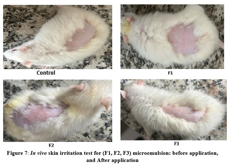 Figure 7: In vivo skin irritation test for (F1, F2, F3) microemulsion: before application, and After application. |