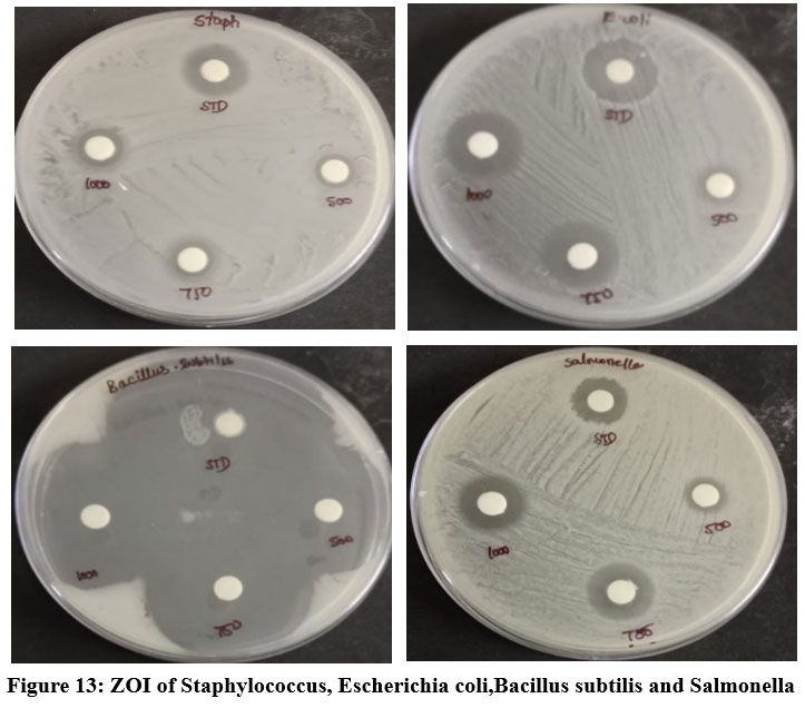 Figure 13: ZOI of Staphylococcus, Escherichia coli,Bacillus subtilis and Salmonella Click here to View Figure |
