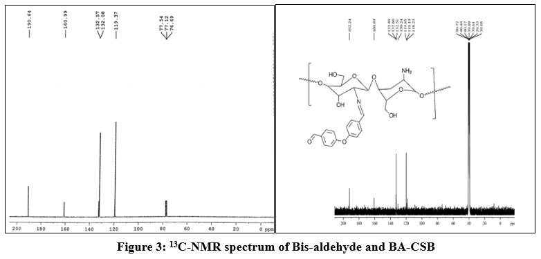 Figure 3: 13C-NMR spectrum of Bis-aldehyde and BA-CSB Click here to View Figure |