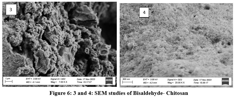 Figure 6: 3 and 4-: SEM studies of Bisaldehyde- Chitosan Click here to View Figure |