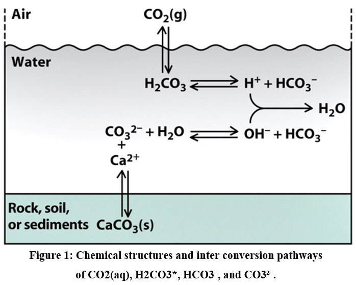 Figure 1: Chemical structures and inter conversion pathways of CO2(aq), H2CO3*, HCO3⁻, and CO3²⁻. Click here to View Figure |