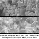 Figure 3: SEM micrographs of pTSa-Ppy (a,b) and pTSa-Ppy@MnO2 nanocomposite (c,d). Micrograph of MnO2 nanorods in inset. Click here to View Figure |