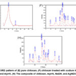 Figure 3: XRD pattern of (E) pure chitosan, (F) chitosan treated with sodium hydroxide and myrrh, (H) The composite of chitosan, myrrh, NaOH, and AgNO3. Click here to View Figure |